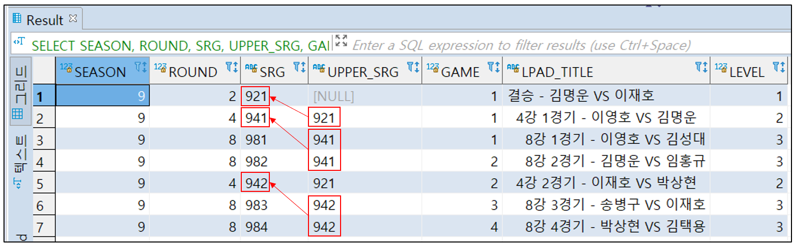 | [Oracle] 계층형 쿼리 (feat. ASL 시즌 9 경기결과) (0) | 2020.10.10 |